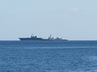 沖に停泊中の自衛隊の巨戦艦群