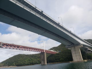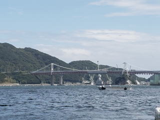 橋脚と狭い海峡が潮に複雑な変化をもたらす